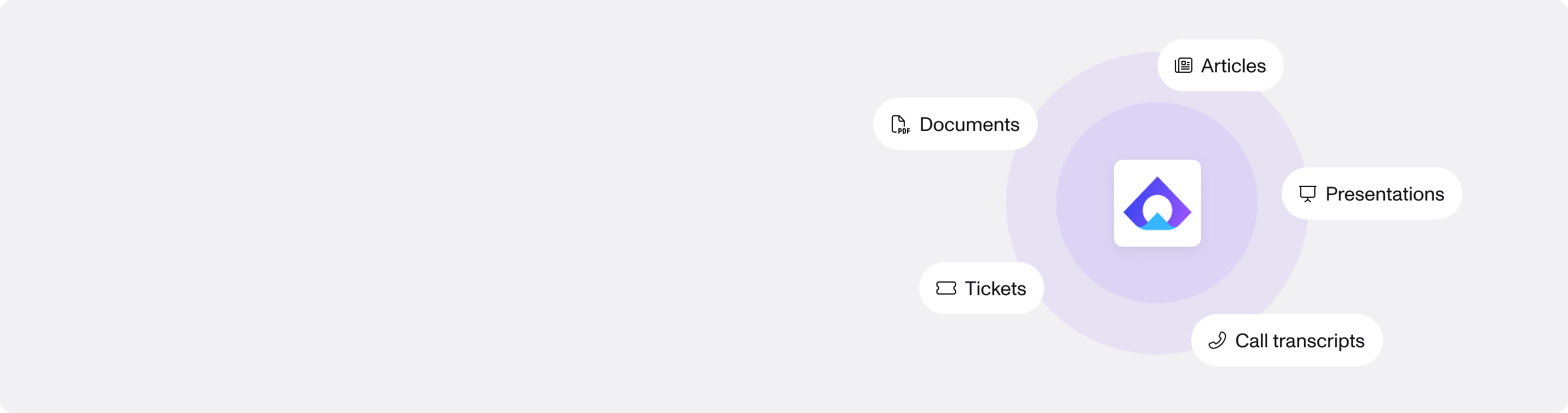 Connect docs, tickets, presentations, past help centers and more into a living, citable knowledge engine.