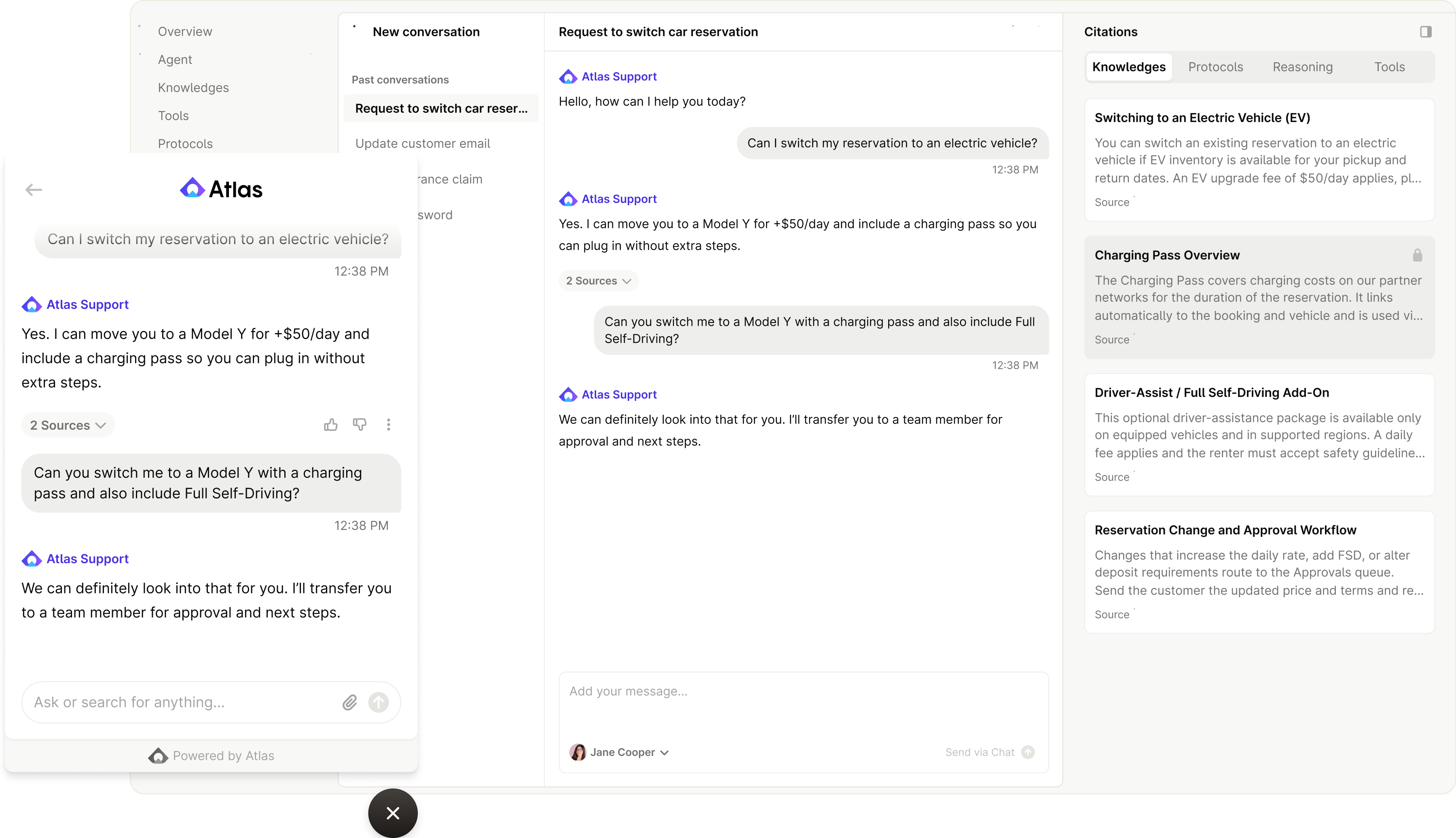 Look at any conversation your agent has had with customers and understand its underlying thinking and resources to troubleshoot problems.