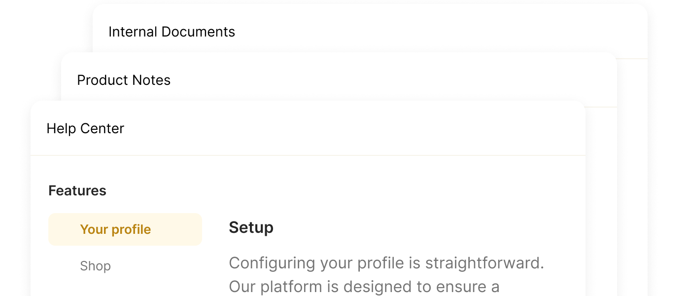 Connect help centers, internal docs, tickets, call summaries, product notes, code releases, slides, and the web