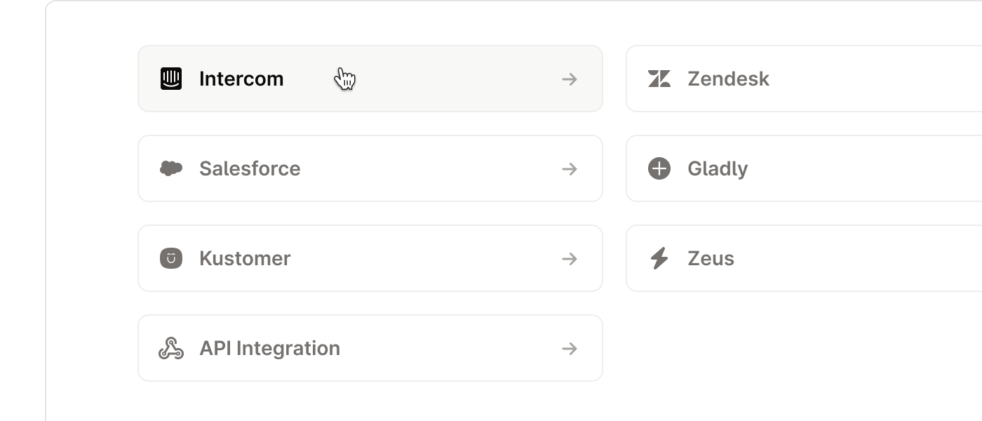Plug in Zendesk, Salesforce, ServiceNow, Intercom, Confluence, Google Drive, Notion, GitHub, S3 and more.