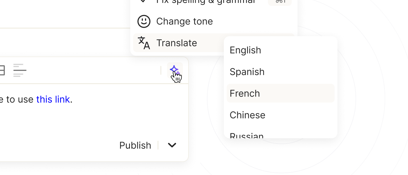 Based on gaps, generates or updates article drafts in your brand voice; can shorten, rephrase, or translate.