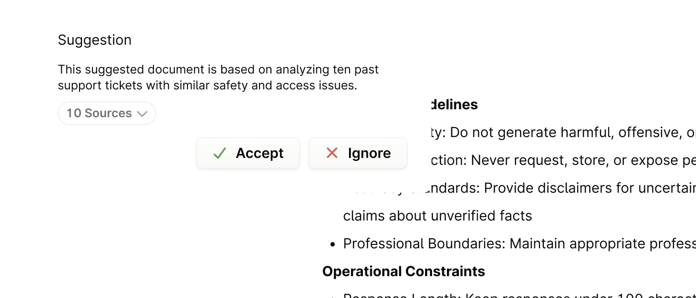 Gaps get flagged and drafted, so common questions resolve faster.